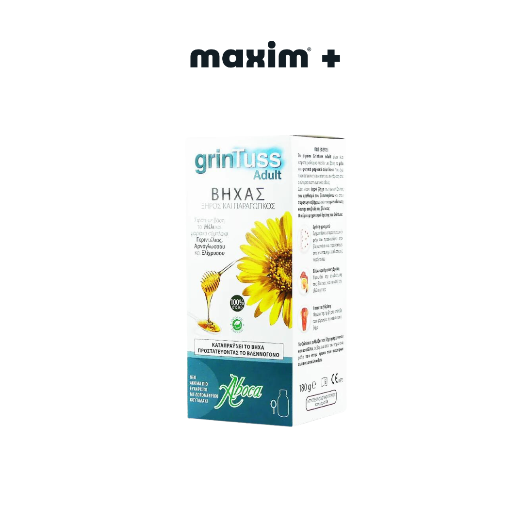 Το Aboca Grintuss Adult Syrup 180g είναι ένα φυσικό σιρόπι για το βήχα, κατάλληλο για ενήλικες και εφήβους άνω των 12 ετών. Πρόκειται για ιατροτεχνολογικό προϊόν που δεν καταστέλλει το αντανακλαστικό του βήχα, αλλά δημιουργεί ένα προστατευτικό φιλμ στους βλεννογόνους της ανώτερης αναπνευστικής οδού. Έτσι, καταπραΰνει τον ξηρό και παραγωγικό βήχα με φυσικό τρόπο, χωρίς να επεμβαίνει στη φυσιολογική άμυνα του οργανισμού.