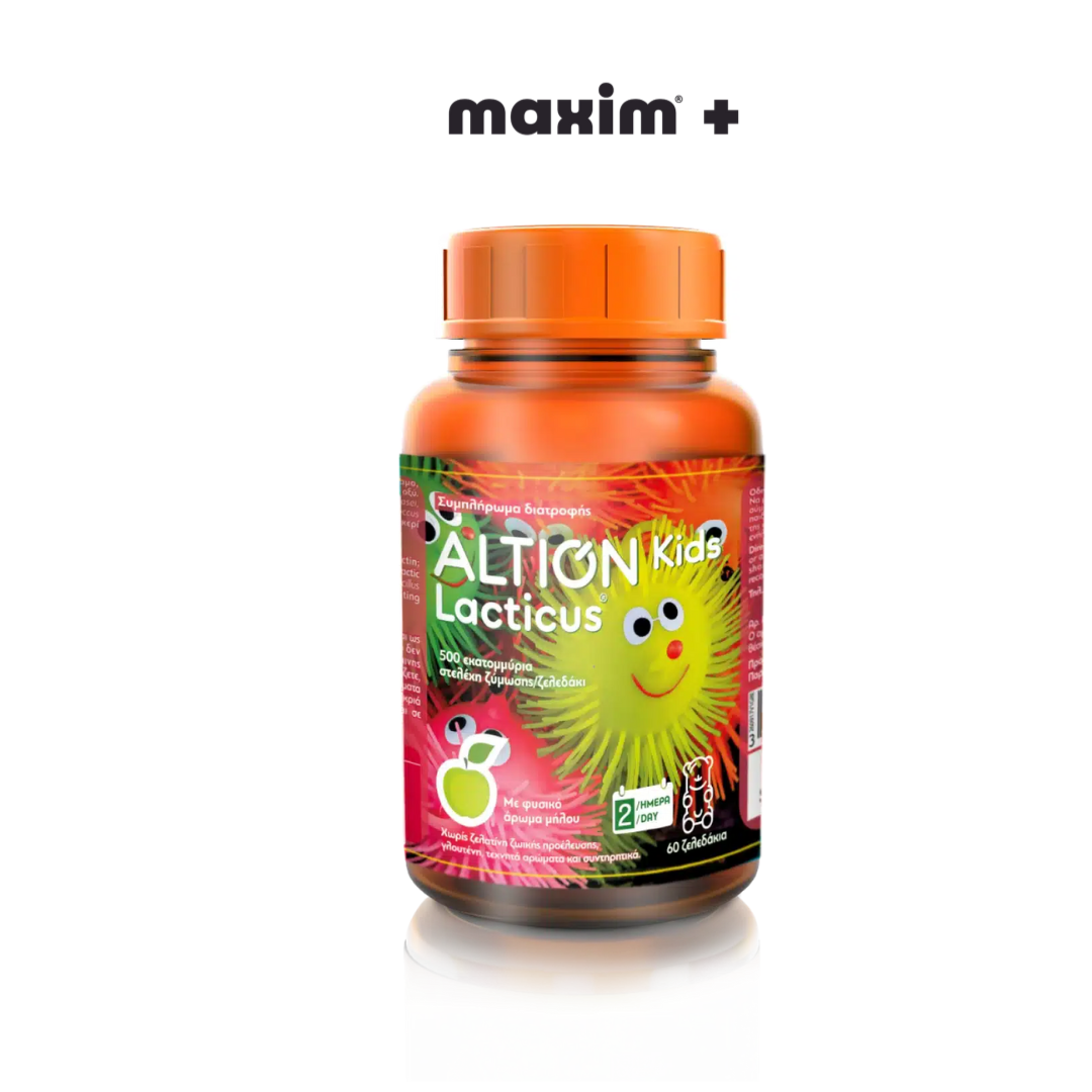 Το Altion Lacticus Kids 60 Gummies είναι ένα συμπλήρωμα διατροφής σε μορφή ζελεδάκι με γεύση πράσινου μήλου, ειδικά σχεδιασμένο για την ενίσχυση της υγείας του πεπτικού συστήματος των παιδιών από 3 ετών και άνω.