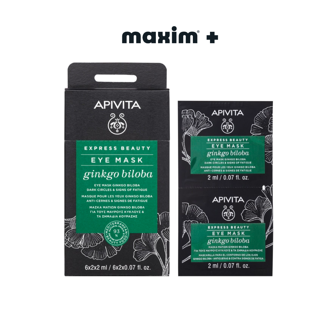 Η μάσκα ματιών EXPRESS BEAUTY με ginkgo biloba, το πιο παλιό δέντρο στον κόσμο, γνωστό και ως «βότανο της μνήμης» καταπραύνει και αντιμετωπίζει τα σημάδια κούρασης στην περιοχή γύρω από τα μάτια.