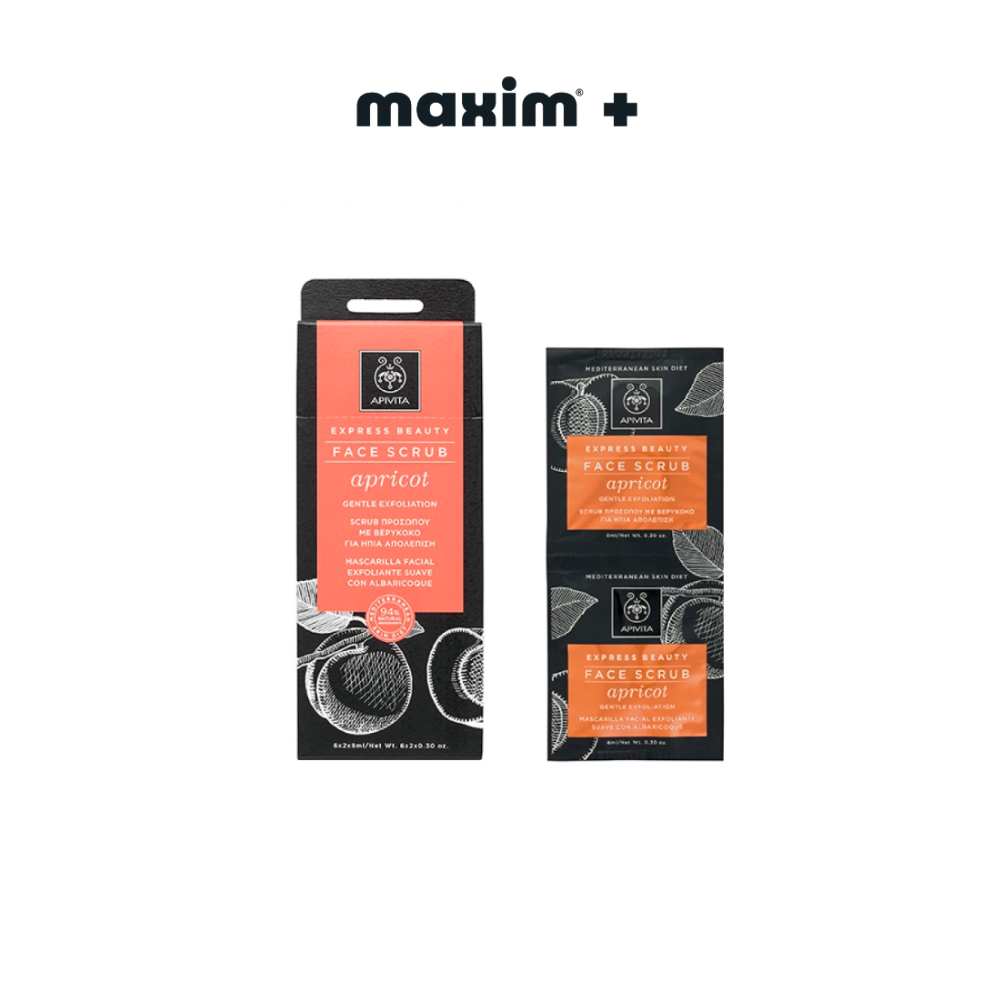 Το Apivita Express Beauty Face Scrub Βερύκοκο Ήπιας Απολέπισης καθαρίζει απαλά την επιδερμίδα χωρίς να την αφυδατώνει. Απολεπίζει απαλά και απομακρύνει τα νεκρά κύτταρα χάρη στους λεπτούς κόκκους από κουκούτσια βερύκοκου.