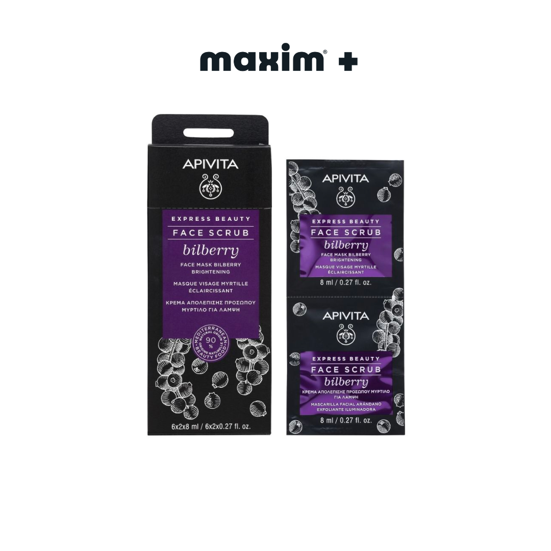 Apivita Express Beauty Face Scrub Blueberry για Λάμψη με Μύρτιλλο 2x8ml