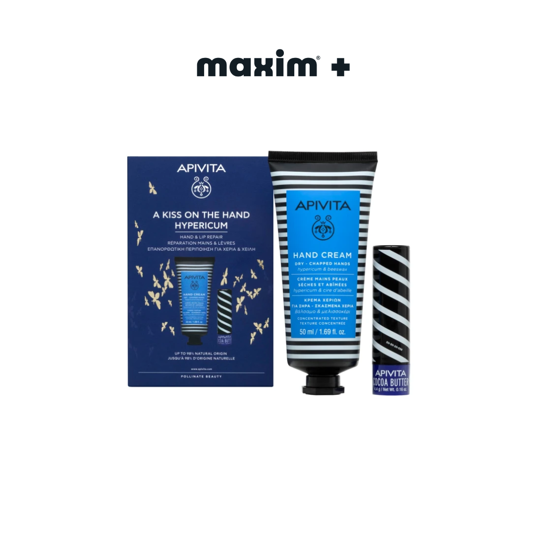 Apivita Set A Kiss On The Hand Hypericum Κρέμα Χεριών για Ξηρά Σκασμένα Χέρια 50ml + Lipcare Cocoa Butter SPF20 Βούτυρο Κακάο