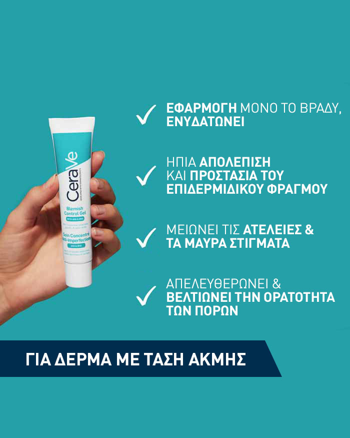 Το CeraVe Blemish Control Gel είναι ένας ελαφρύς, μη φαγεσωρογόνος gel ορός που καταπολεμά τις ατέλειες, μειώνει τους φραγμένους πόρους και βοηθά στην πρόληψη της ακμής, χάρη στον συνδυασμό σαλικυλικού οξέος (BHA), γαλακτικού οξέος (AHA) και κεραμιδίων.