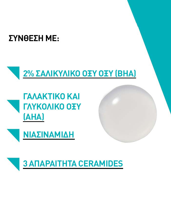 Η σύνθεση του βοηθά στην απαλή απολέπιση της επιδερμίδας, ελέγχει τη λιπαρότητα και διατηρεί τον προστατευτικό δερματικό φραγμό, ενώ η νιασιναμίδη συμβάλλει στην καταπράυνση της επιδερμίδας και στη μείωση των ερεθισμών. Ιδανικό για καθημερινή χρήση σε επιδερμίδες με τάση ακμής ή λιπαρότητα.
