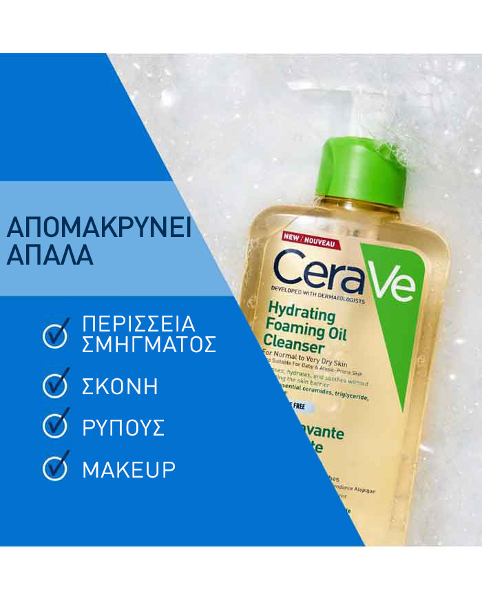 Το CeraVe Hydrating Foaming Oil Cleanser είναι ένα λάδι καθαρισμού με ενυδατικό αφρό, ειδικά σχεδιασμένο για κανονικές έως πολύ ξηρές και ευαίσθητες επιδερμίδες. Συνδυάζει τον απαλό καθαρισμό με εντατική ενυδάτωση, χωρίς να διαταράσσει τον δερματικό φραγμό.