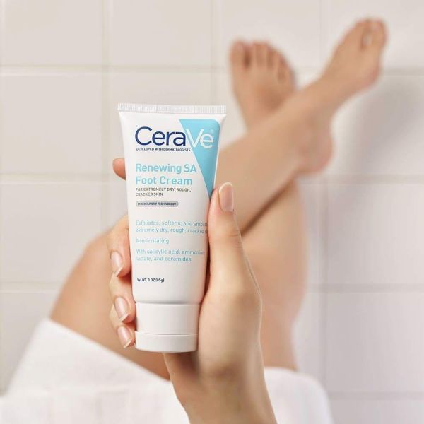 Η CeraVe SA Renewing Foot Cream είναι μια αναπλαστική κρέμα ποδιών, ειδικά σχεδιασμένη για πολύ σκληρό, τραχύ και σκασμένο δέρμα.