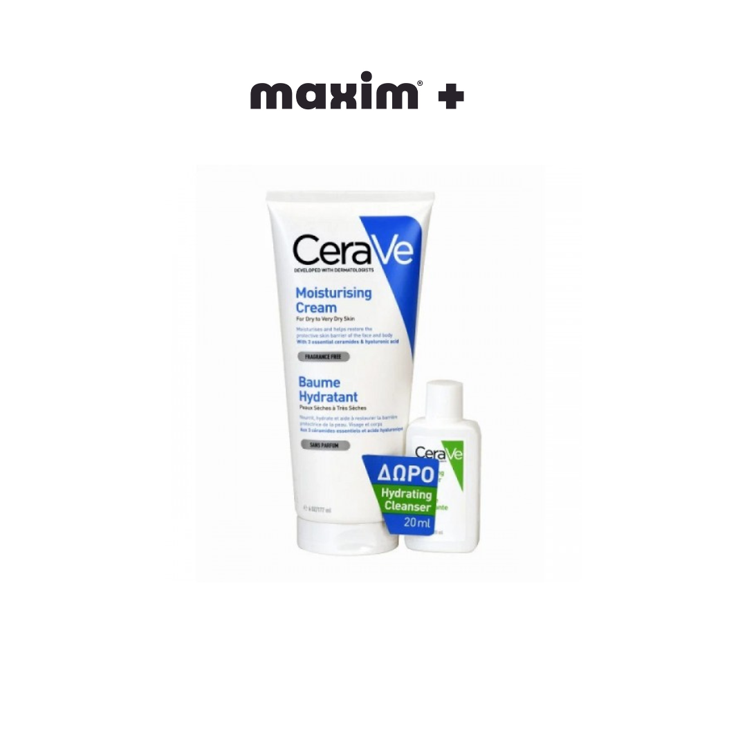 CeraVe Set Moisturising Cream Ενυδατική Κρέμα για Ξηρό - Πολύ Ξηρό Δέρμα 177ml + Δώρο Hydrating Cleanser Ενυδατική Κρέμα Καθαρισμού 20ml