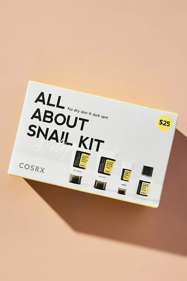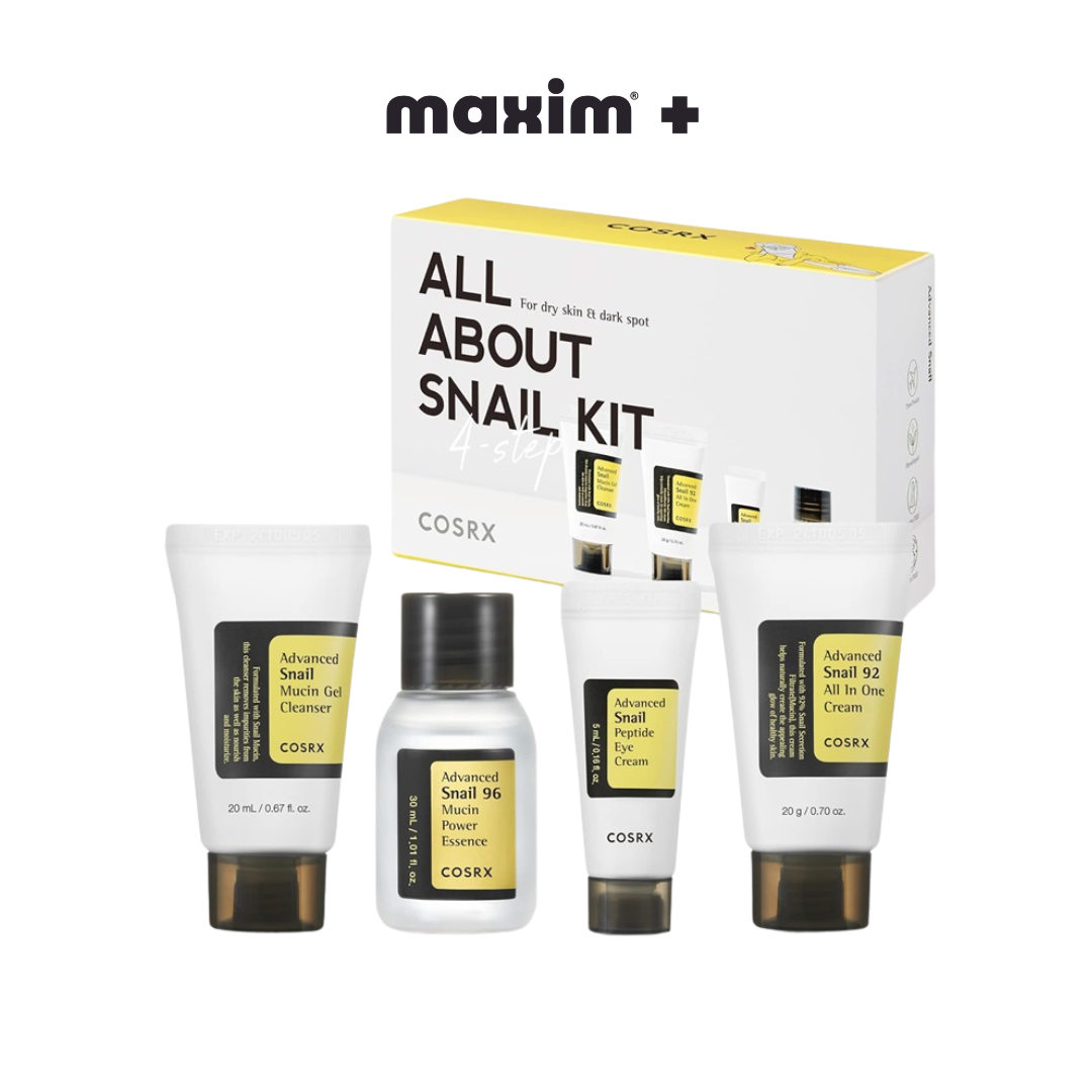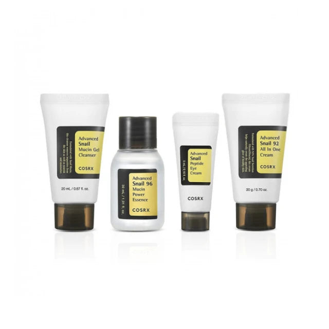 Το COSRX All About Snail Kit είναι ένα πλήρες σετ περιποίησης 4 βημάτων που αξιοποιεί τη δυναμική του εκκρίματος σαλιγκαριού, γνωστού για τις ενυδατικές, επανορθωτικές και καταπραϋντικές του ιδιότητες. Ιδανικό για όσους θέλουν να δοκιμάσουν τη δημοφιλή σειρά Snail της COSRX ή να έχουν τα απαραίτητα προϊόντα σε πρακτικά μεγέθη ταξιδιού.
