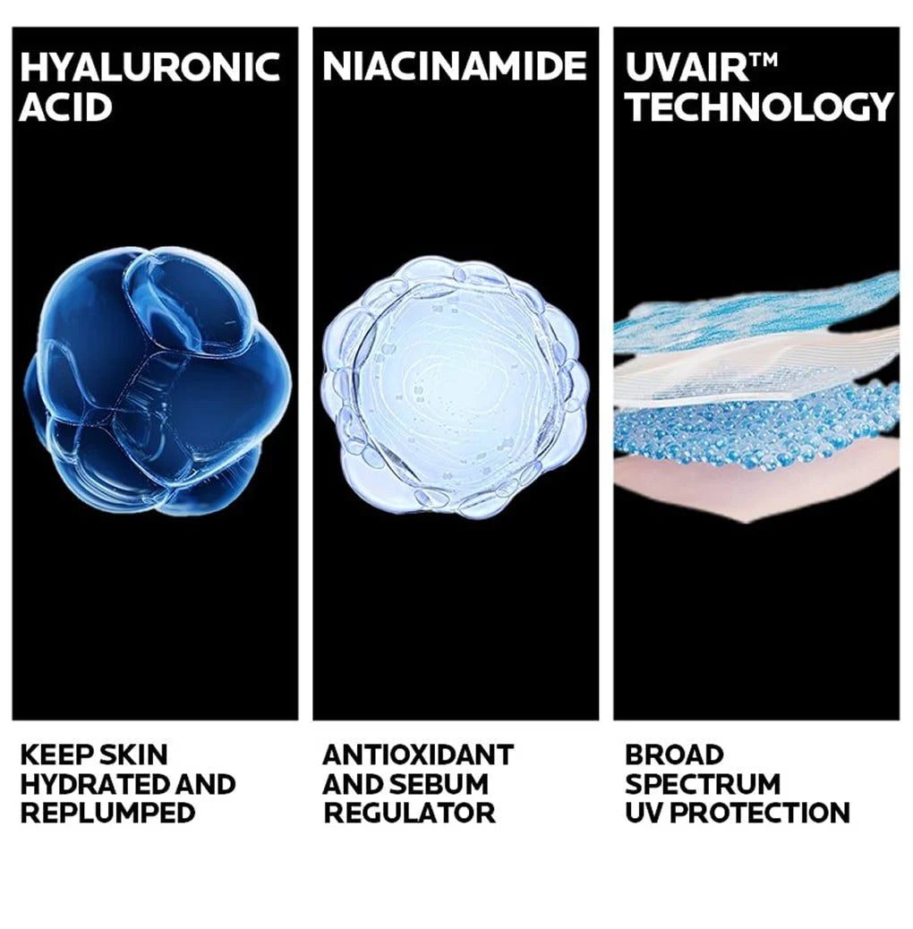 Το La Roche-Posay Anthelios UV AIR SPF 50+ είναι ένα καινοτόμο αντηλιακό προσώπου με εξαιρετικά ανάλαφρη, αέρινη υφή, σχεδιασμένο για να προσφέρει πολύ υψηλή αντηλιακή προστασία και ταυτόχρονα 16 ώρες αντιοξειδωτικής δράσης. Ιδανικό για καθημερινή χρήση, ακόμα και στις πιο απαιτητικές συνθήκες, προσφέρει άμεση απορρόφηση και ματ φινίρισμα, χωρίς να βαραίνει την επιδερμίδα.
