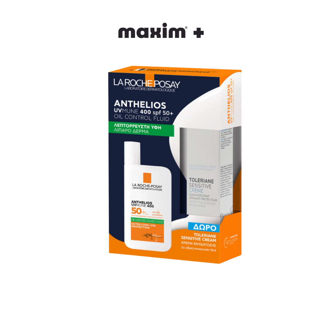 La Roche-Posay Anthelios UVMUNE 400 Fluid SPF50+ Αντηλιακό Προσώπου για Λιπαρό Δέρμα & Δώρο Toleriane Sensitive Ενυδατική Κρέμα 15ml – 1 Σετ