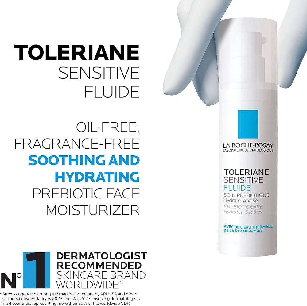 Η La Roche-Posay Toleriane Sensitive Fluide είναι μια λεπτόρρευστη, ενυδατική κρέμα προσώπου ειδικά σχεδιασμένη για ευαίσθητες και δυσανεκτικές επιδερμίδες. Η σύνθεσή της είναι εξαιρετικά απαλή, χωρίς οινόπνευμα και άρωμα, προσφέροντας καθημερινή ενυδάτωση με καταπραϋντική δράση που μειώνει την αίσθηση τραβήγματος, ερεθισμών και τσιμπήματος.