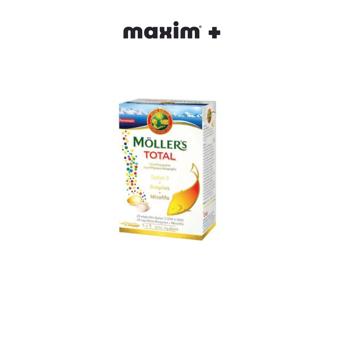 Moller's Total Συμπλήρωμα Διατροφής Ωμέγα 3 Βιταμινών Μετάλλων (28 caps + 28 tabs) 1+1 ΤΗΝ ΗΜΕΡΑ