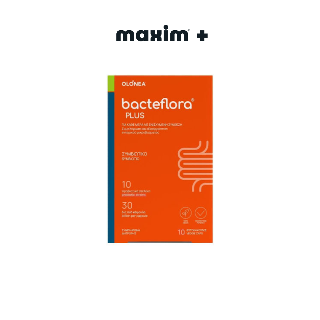Το Olonea BacteFlora Plus 10 κάψουλες είναι ένα συμβιοτικό συμπλήρωμα διατροφής που συνδυάζει 10 προβιοτικά στελέχη με 30 δισεκατομμύρια ζωντανά βακτήρια ανά κάψουλα και πρεβιοτική ινουλίνη, προσφέροντας ενισχυμένη υποστήριξη για την ισορροπία του εντερικού μικροβιώματος και τη φυσιολογική λειτουργία του εντέρου .