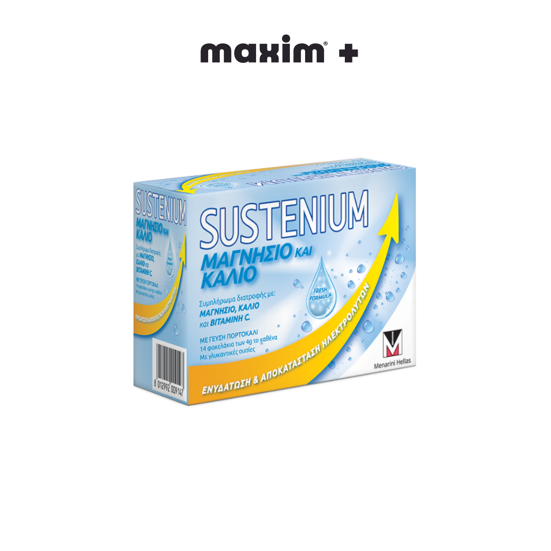 Το Sustenium Μαγνήσιο & Κάλιο είναι ένα συμπλήρωμα διατροφής ιδανικό για περιόδους έντονης ζέστης και εφίδρωσης, όταν ο οργανισμός χρειάζεται ενυδάτωση και αποκατάσταση των ηλεκτρολυτών. Η σύνθεσή του με μαγνήσιο, κάλιο και βιταμίνη C προσφέρει ανακούφιση από μυϊκές κράμπες, βοηθά στην αντιμετώπιση πόνων περιόδου και συμβάλλει στη συνολική ενίσχυση του οργανισμού σε απαιτητικές συνθήκες.