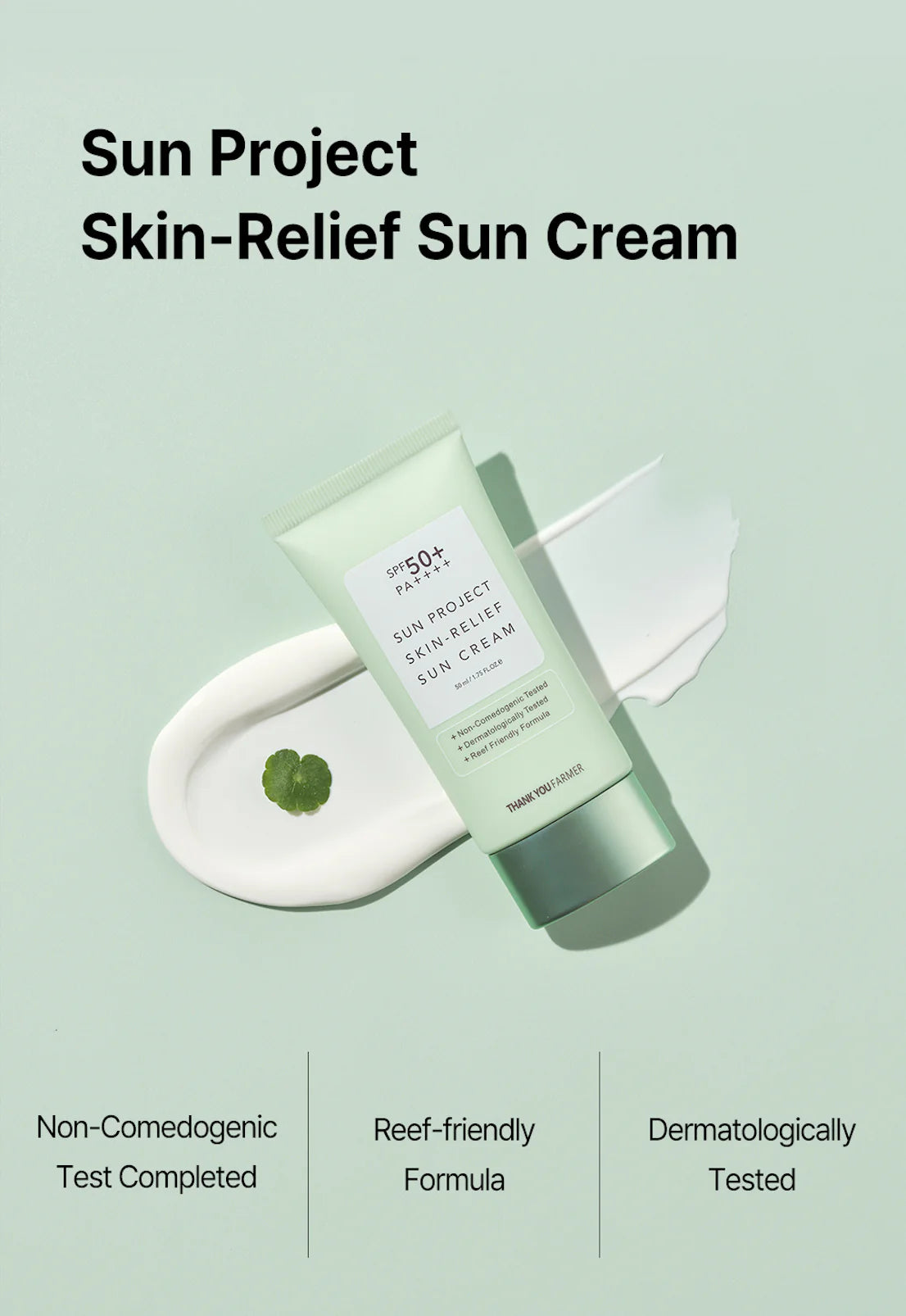Thank You Farmer – Sun Project Skin Relief Sun Cream SPF50+ Αντηλιακή Κρέμα Προσώπου για Ευαίσθητες Επιδερμίδες | 50ml