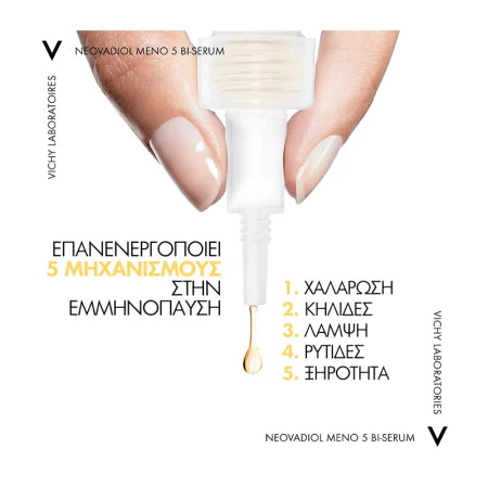 Το Vichy Neovadiol Meno 5 Bi-Serum 30ml είναι ένας προηγμένος ορός προσώπου, ειδικά σχεδιασμένος για τις ανάγκες της επιδερμίδας κατά την εμμηνόπαυση και περιεμμηνόπαυση.